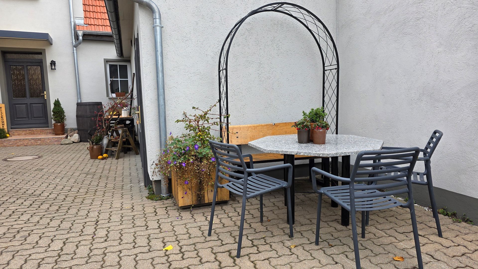 Wie bei unseren anderen Wohnungen profitieren Sie auch hier von der ruhigen Lage auf einem begrünten Innenhof mit überdachter Terrasse und gemütlicher Sitzfläche im Freien.