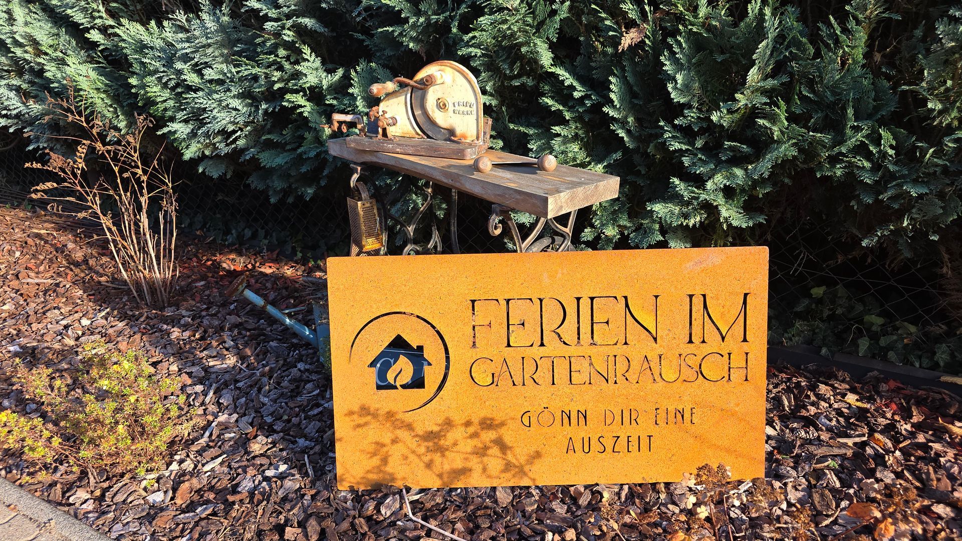 Der liebevoll bepflanzte Grundstück mit blühenden Sträuchern schafft eine entspannte Atmosphäre mitten im UNESCO-Welterbe Gartenreich Wörlitz.