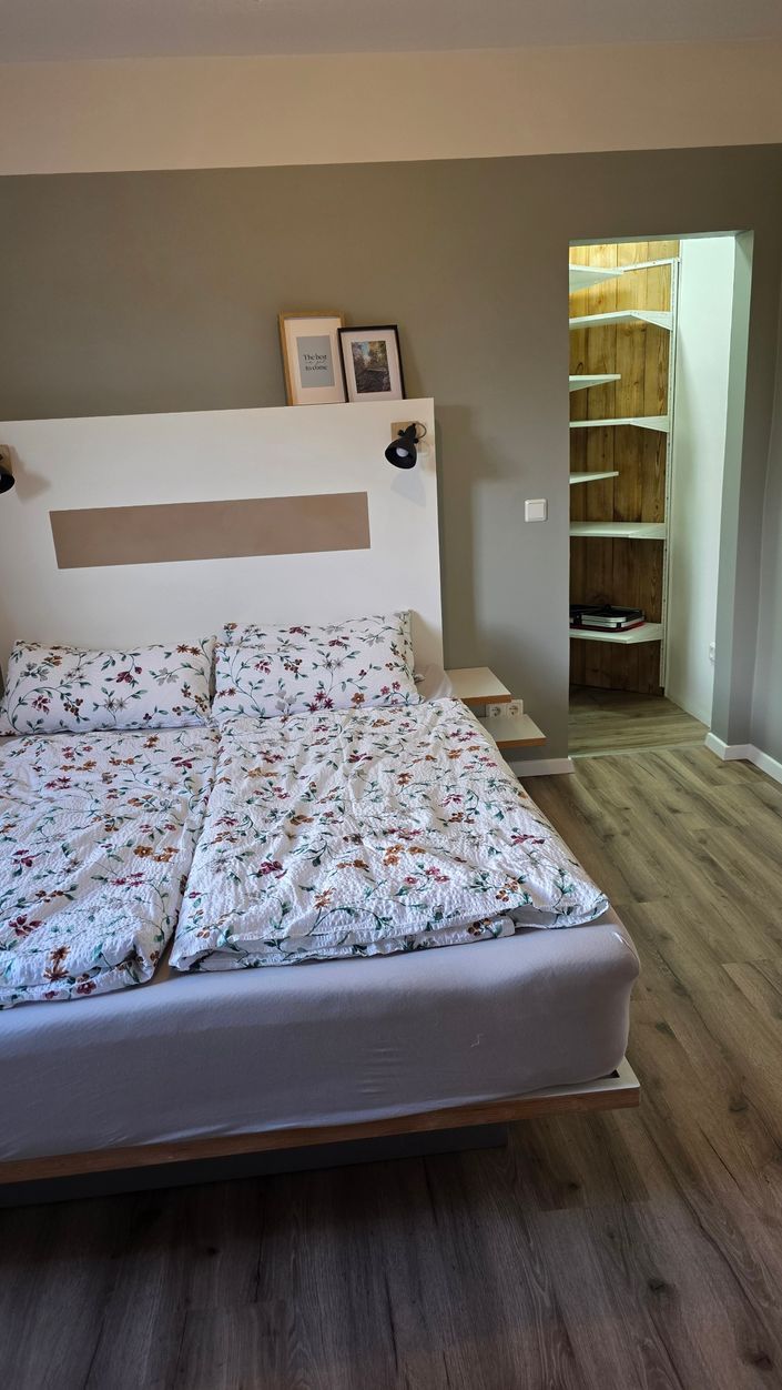 Unsere dritte frisch renovierte 61 m² Ferienwohnung kombiniert Gemütlichkeit mit moderner Ausstattung – perfekt für Paare, kleine Familien oder Freunde. Sie verfügt über ein separates Schlafzimmer sowie ein Wohnzimmer mit hochwertigem Schlafsofa, das sich bei Bedarf in einen weiteren Schlafplatz verwandeln lässt.
