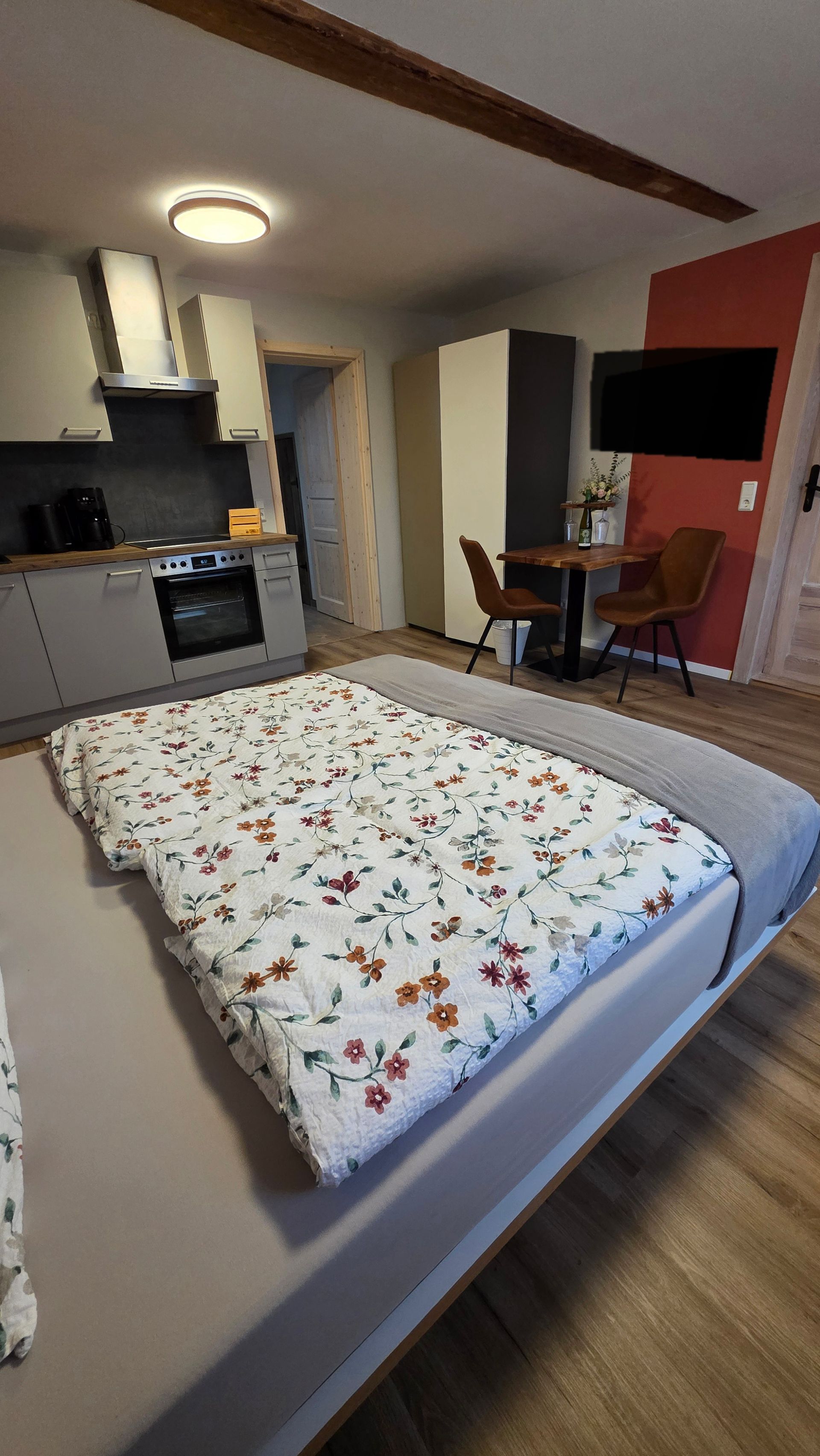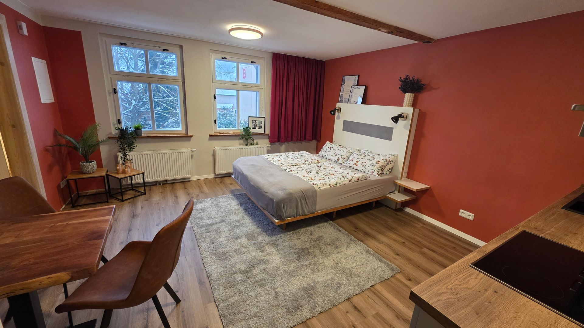 Unser frisch renoviertes 29 m² Apartment bietet Ihnen auf charmante Weise alles, was Sie für einen entspannten Aufenthalt im Herzen von Wörlitz benötigen. Die helle und freundliche Ferienwohnung verfügt über einen kombinierten Wohn- und Schlafbereich mit gemütlichem Bett, Sitzecke und einer gut ausgestatteten Küchenzeile – ideal für Singles oder Paare.